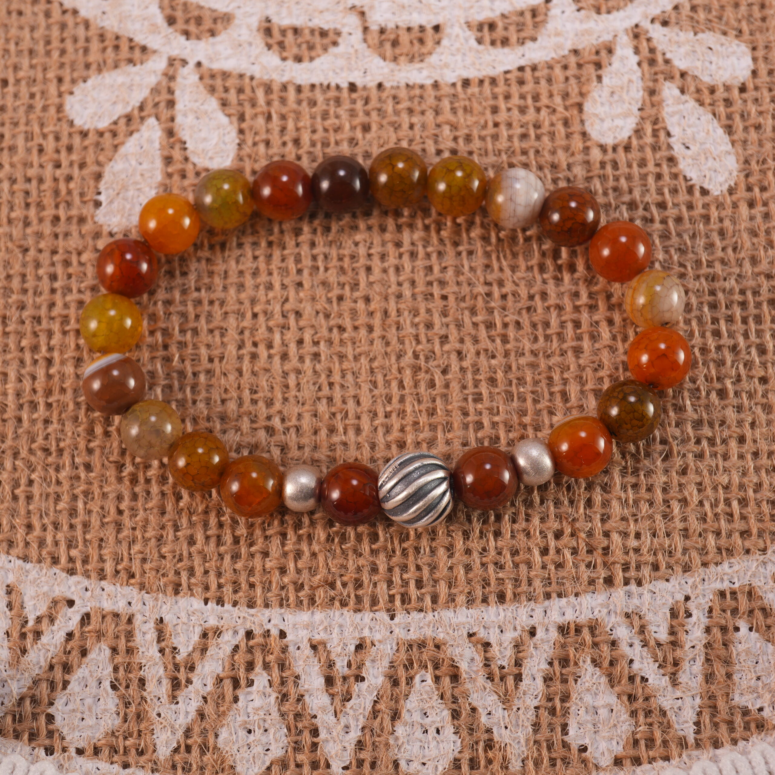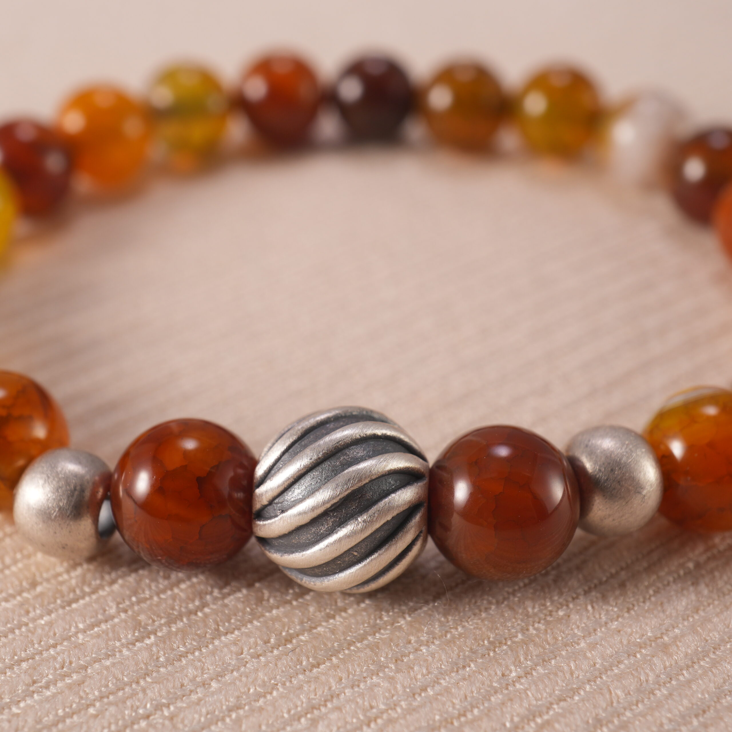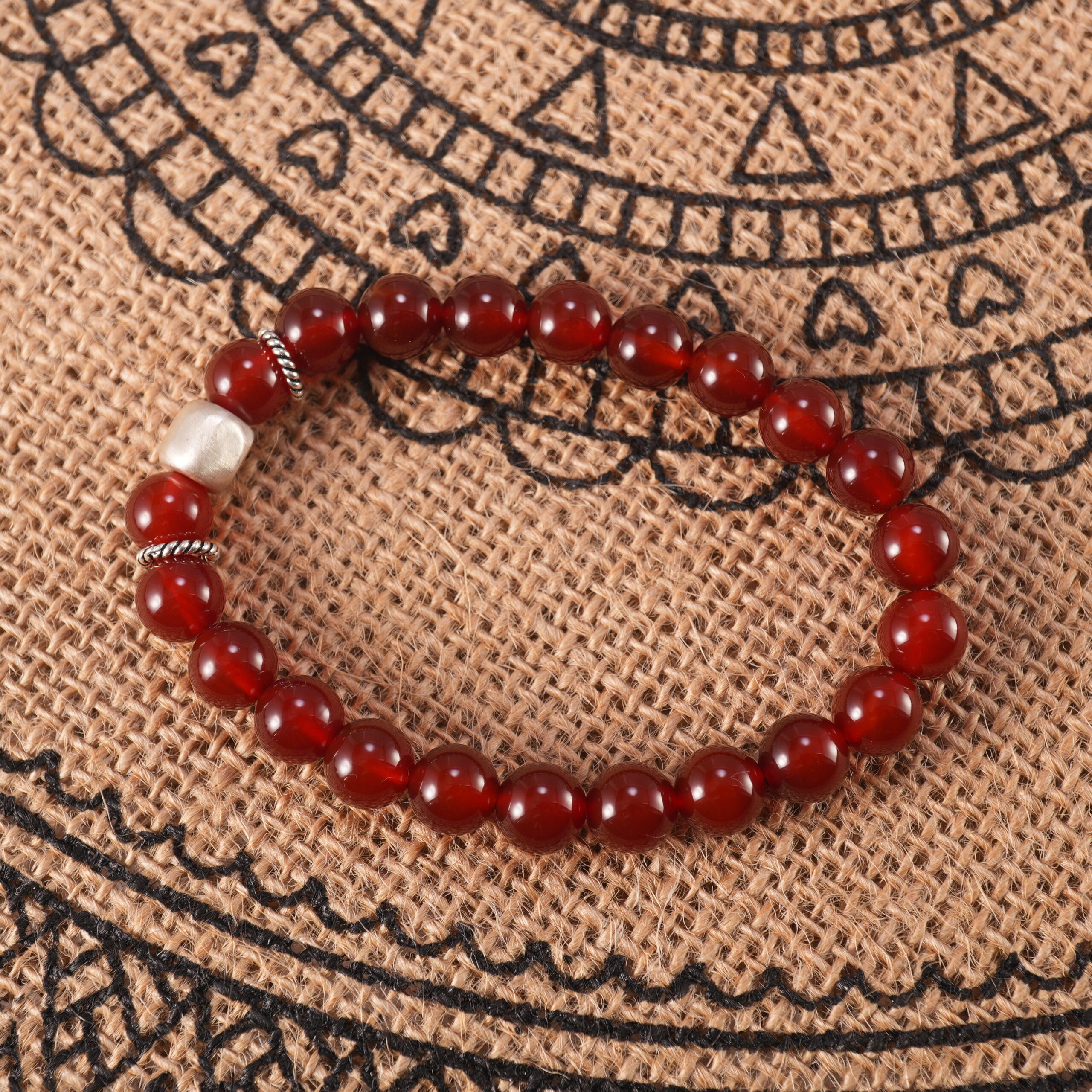 - Stacked red agate bracelets with carved floral agate beads and S925 silver accents