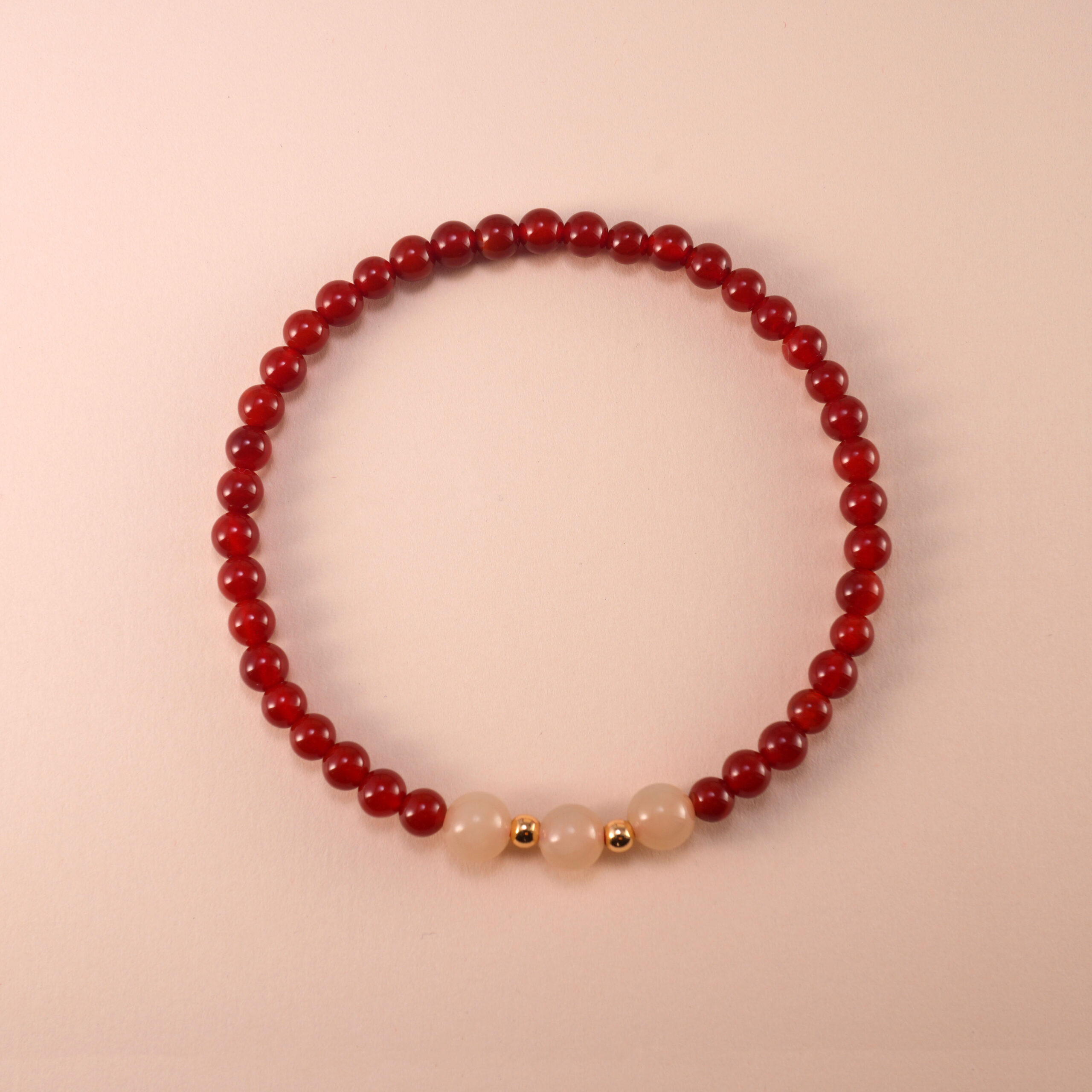 This 4mm bracelet blends the energizing power of red agate with the calming clarity of white chalcedony. A minimalist piece designed to boost vitality, focus, and emotional balance — perfect for daily wear.