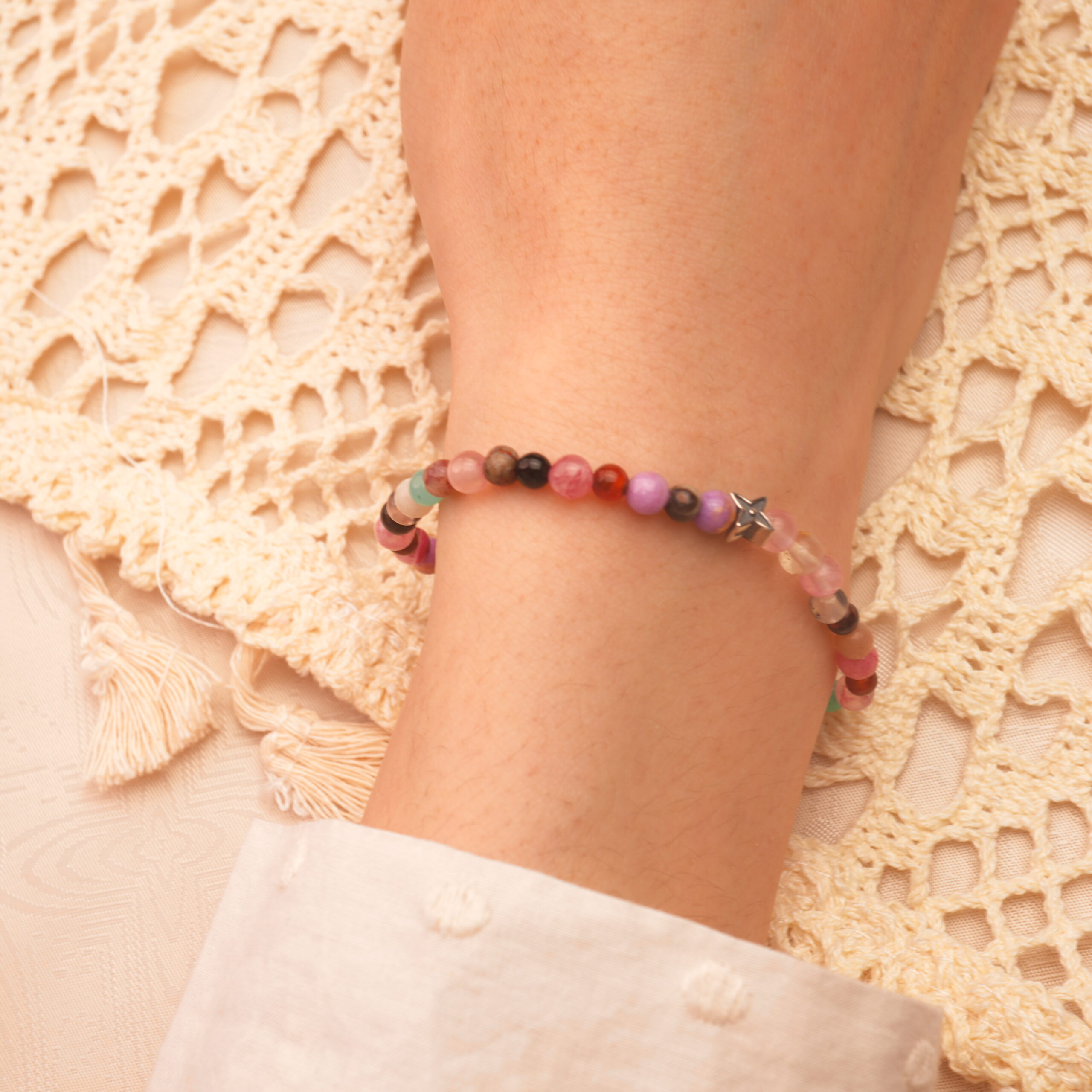 This elegant 4 mm bracelet combines rose quartz and amethyst beads to promote love, emotional healing, and vibrant energy. A colorful piece perfect for everyday wear and self-care.