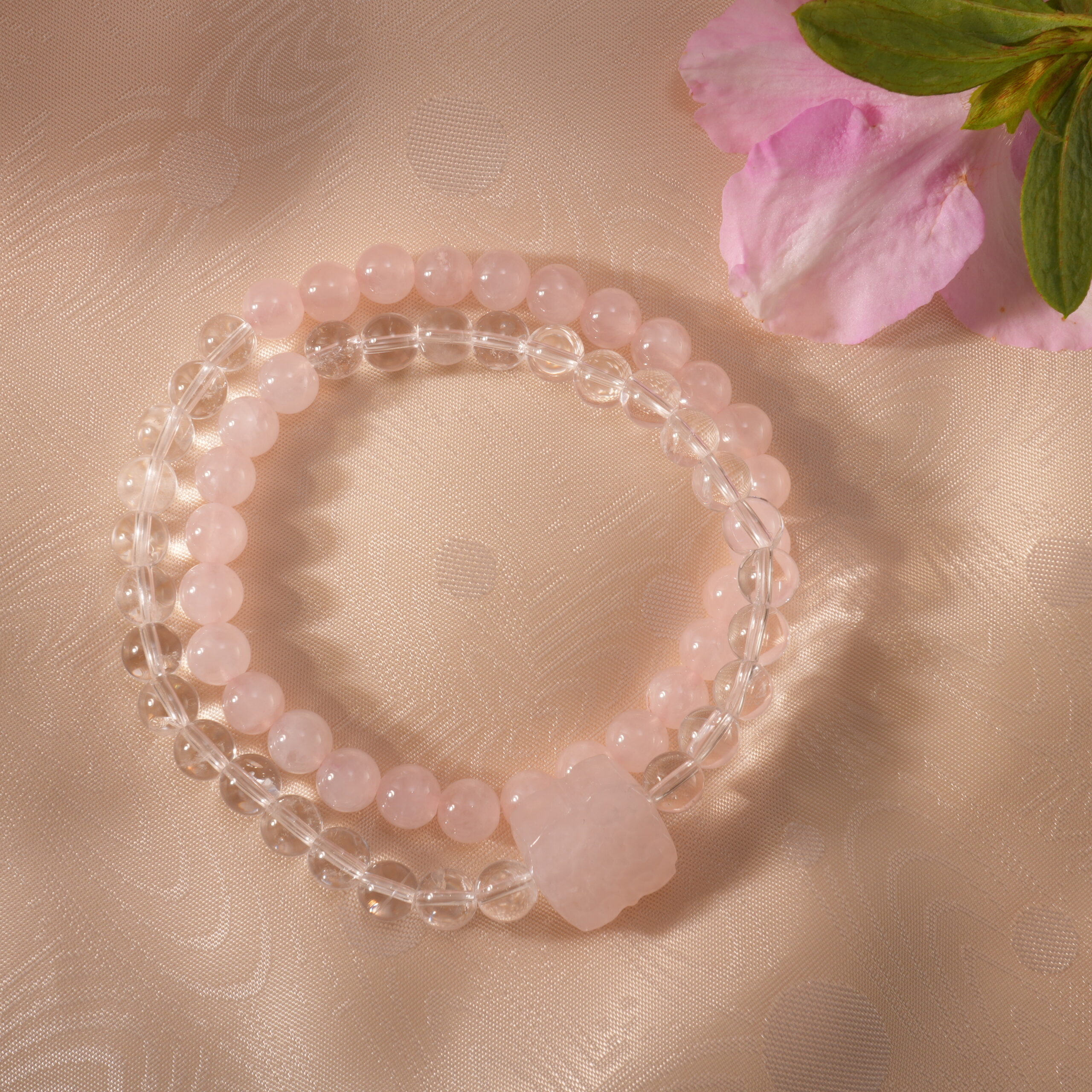 Categories: Beaded Bracelets, Clear Quartz, Love, Rose Quartz