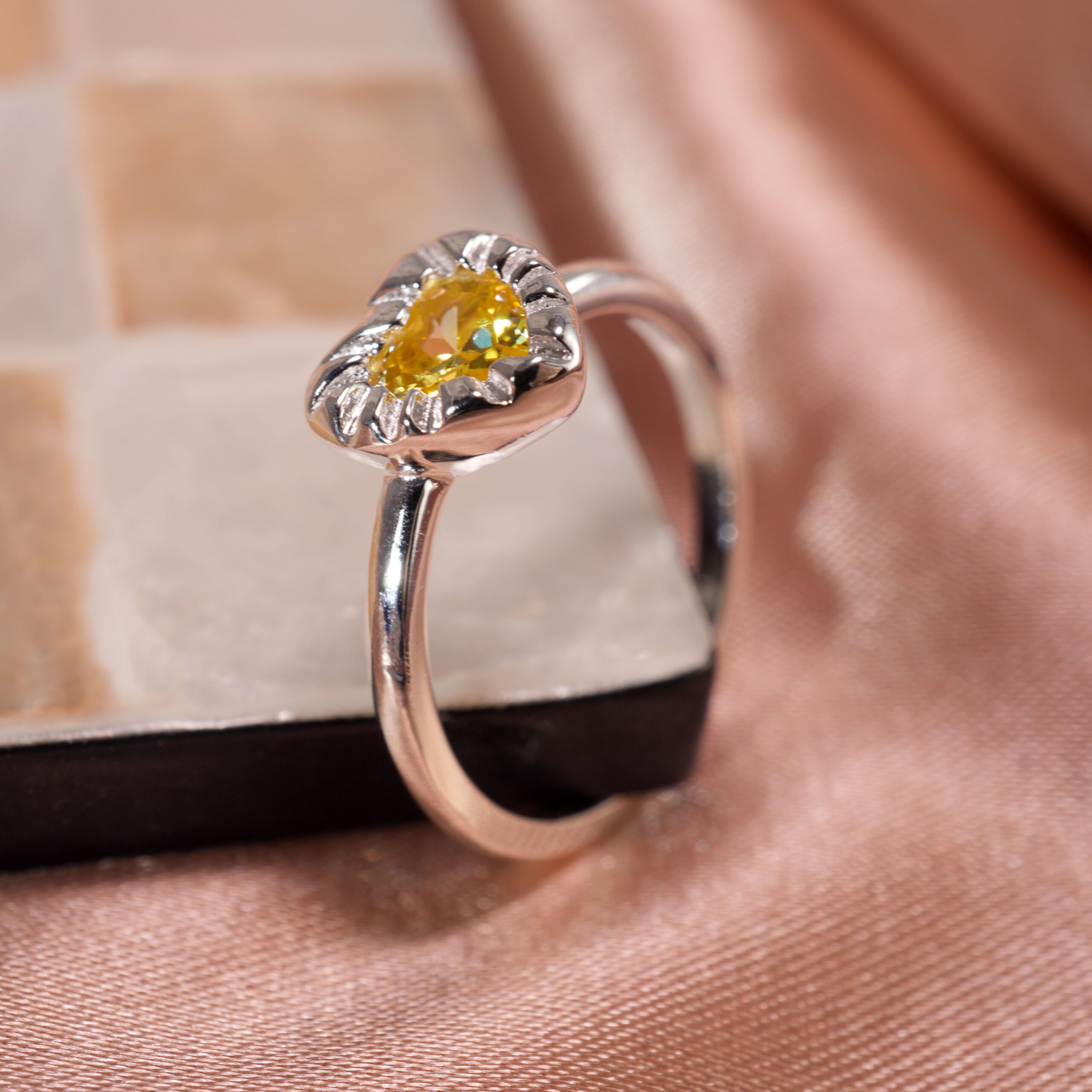 The Yellow Gemstone Ring features a bright yellow zircon in S925 sterling silver, radiating positivity, confidence, and abundance. Perfect for daily wear or special occasions.