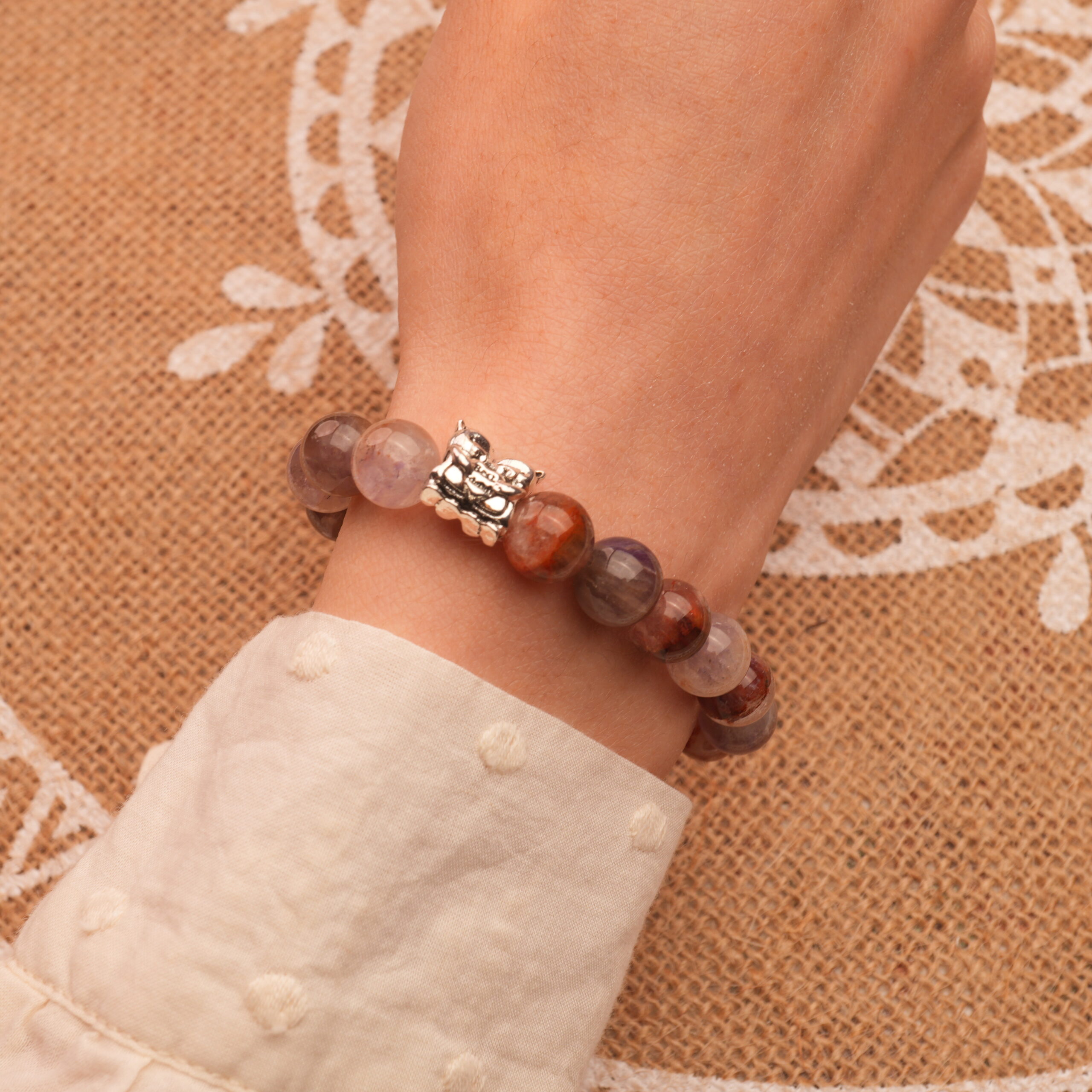 Made with 8mm purple phantom quartz beads, this bracelet is crafted to promote peace and tranquility. Known for its calming and protective energy, purple phantom quartz helps clear emotional blockages, reduce stress, and support deep, restorative sleep.