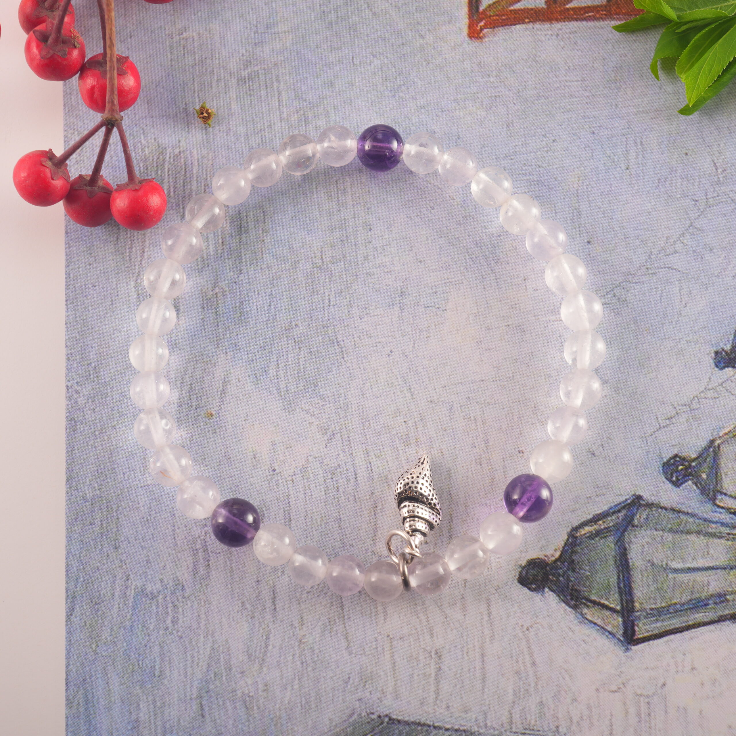 Made with 4 mm amethyst and chalcedony beads, this bracelet is designed to promote relaxation and improve sleep quality. Amethyst calms the mind and reduces stress, while chalcedony supports emotional balance, making it an ideal choice for peaceful, restorative rest.