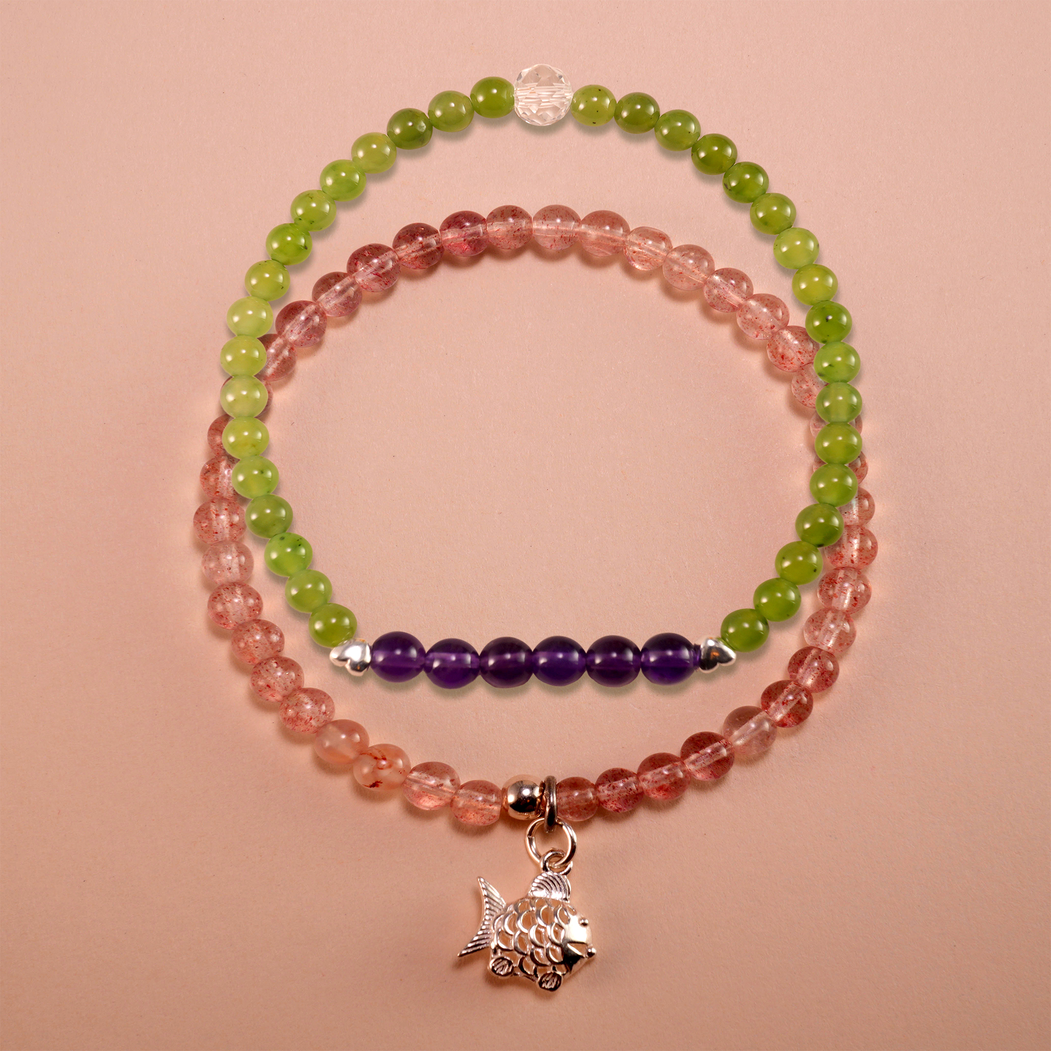 Be the first to review “Green Chalcedony, Amethyst & Strawberry Quartz Stacked Bracelet Set” Cancel reply