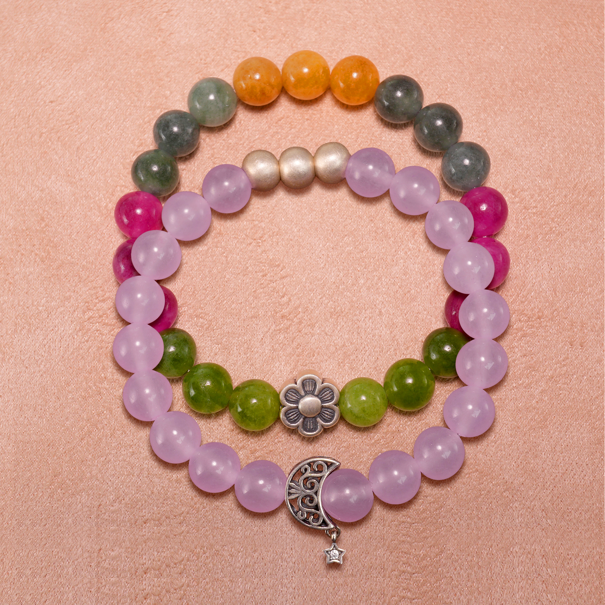 - Includes two separate bracelets: one amethyst, one colorful tourmaline