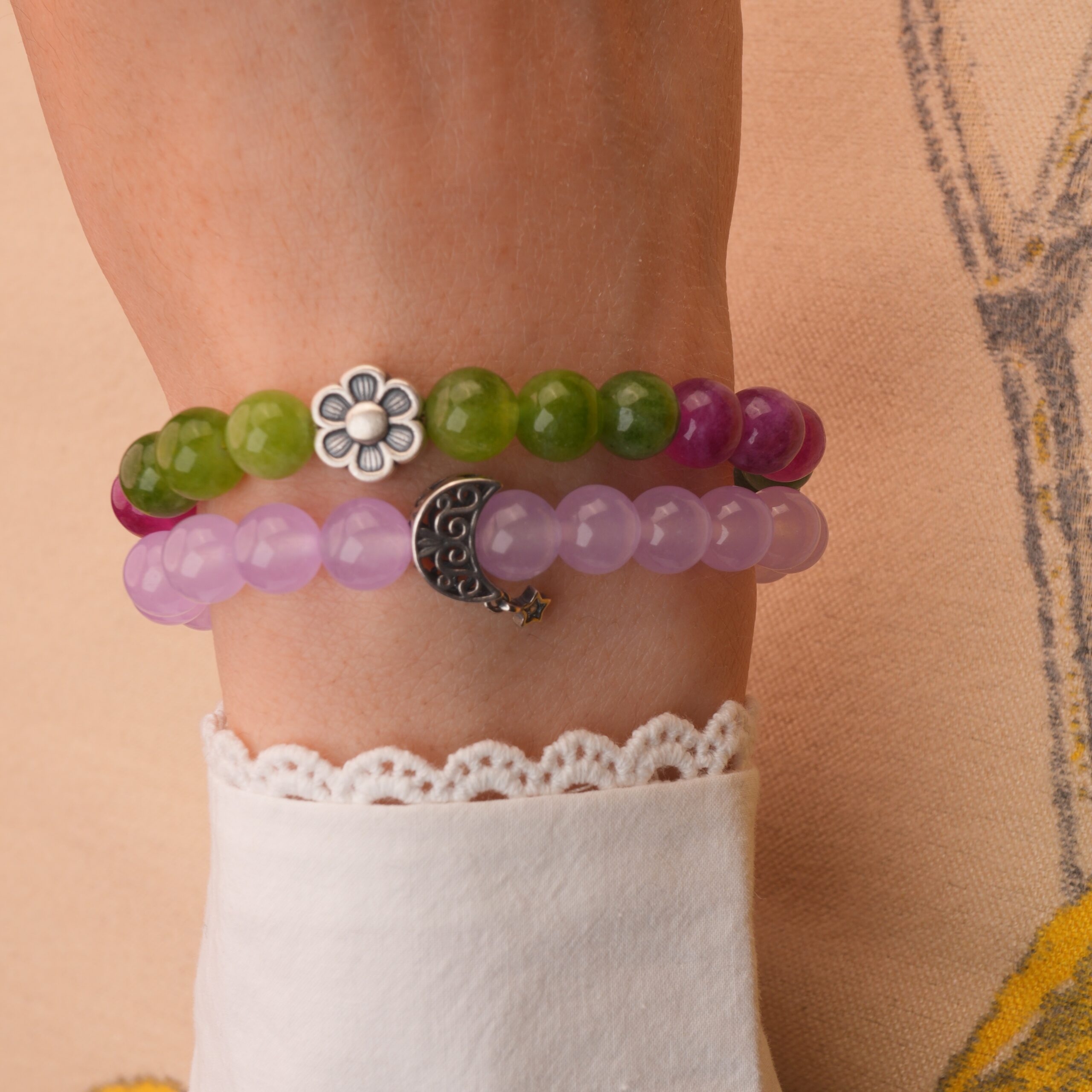 A stunning blend of deep calm and bright energy, this two-piece bracelet stack combines the soothing power of amethyst with the revitalizing energy of multicolor tourmaline.