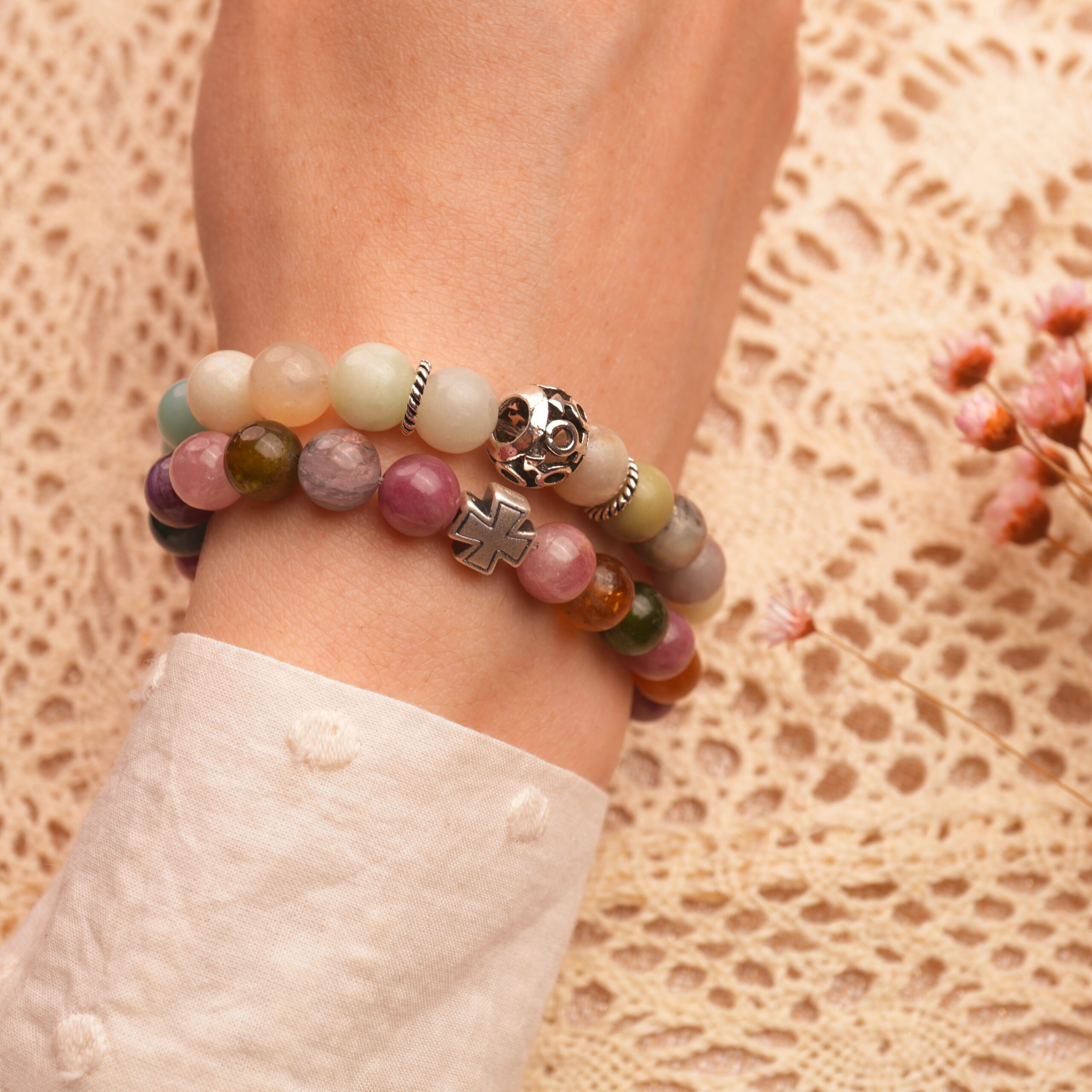This colorful two-bracelet stack pairs multicolor amazonite with tourmaline and S925 silver—designed to ignite creativity, brighten your mood, and energize your spirit.