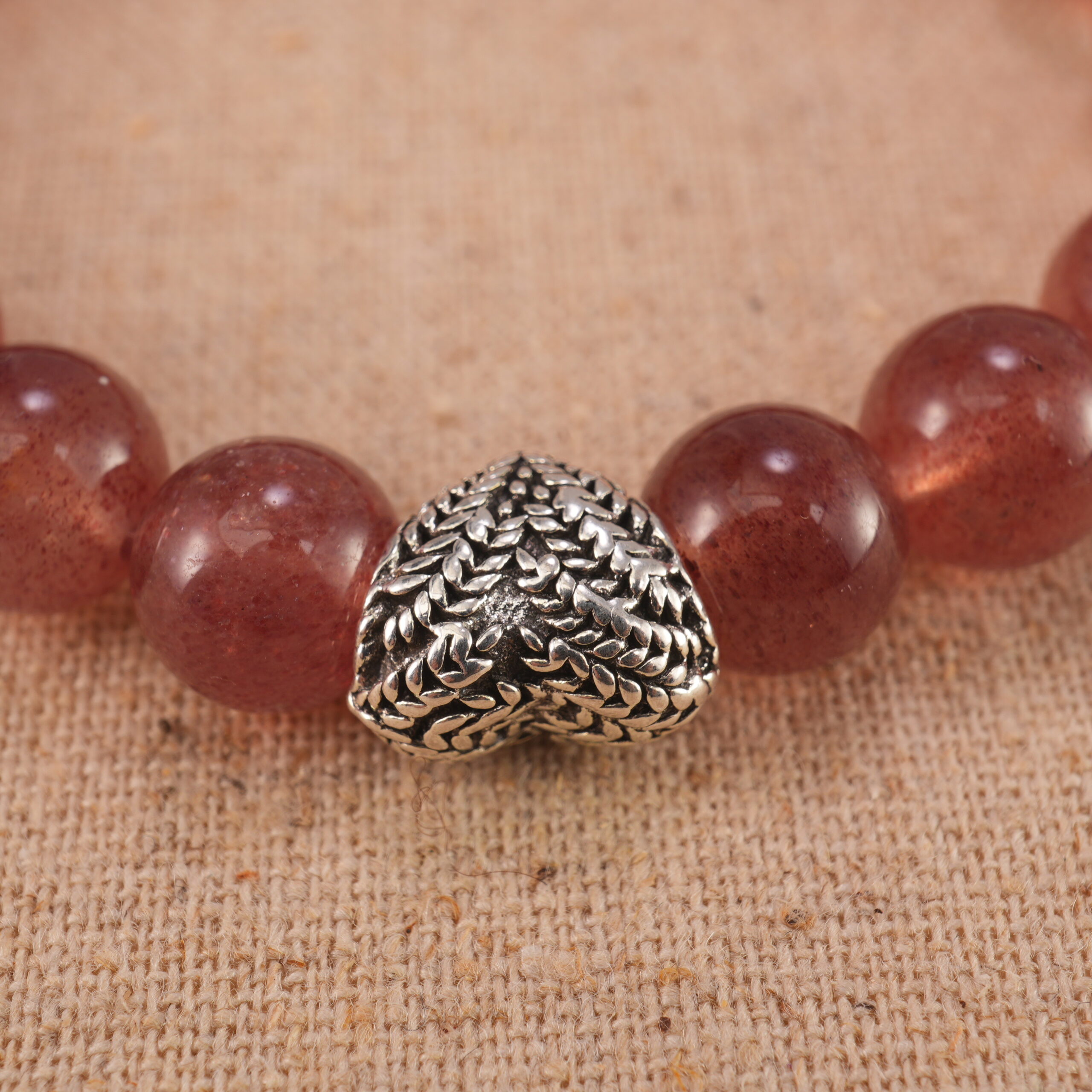 - Genuine Strawberry Quartz beads with a heart-shaped charm
