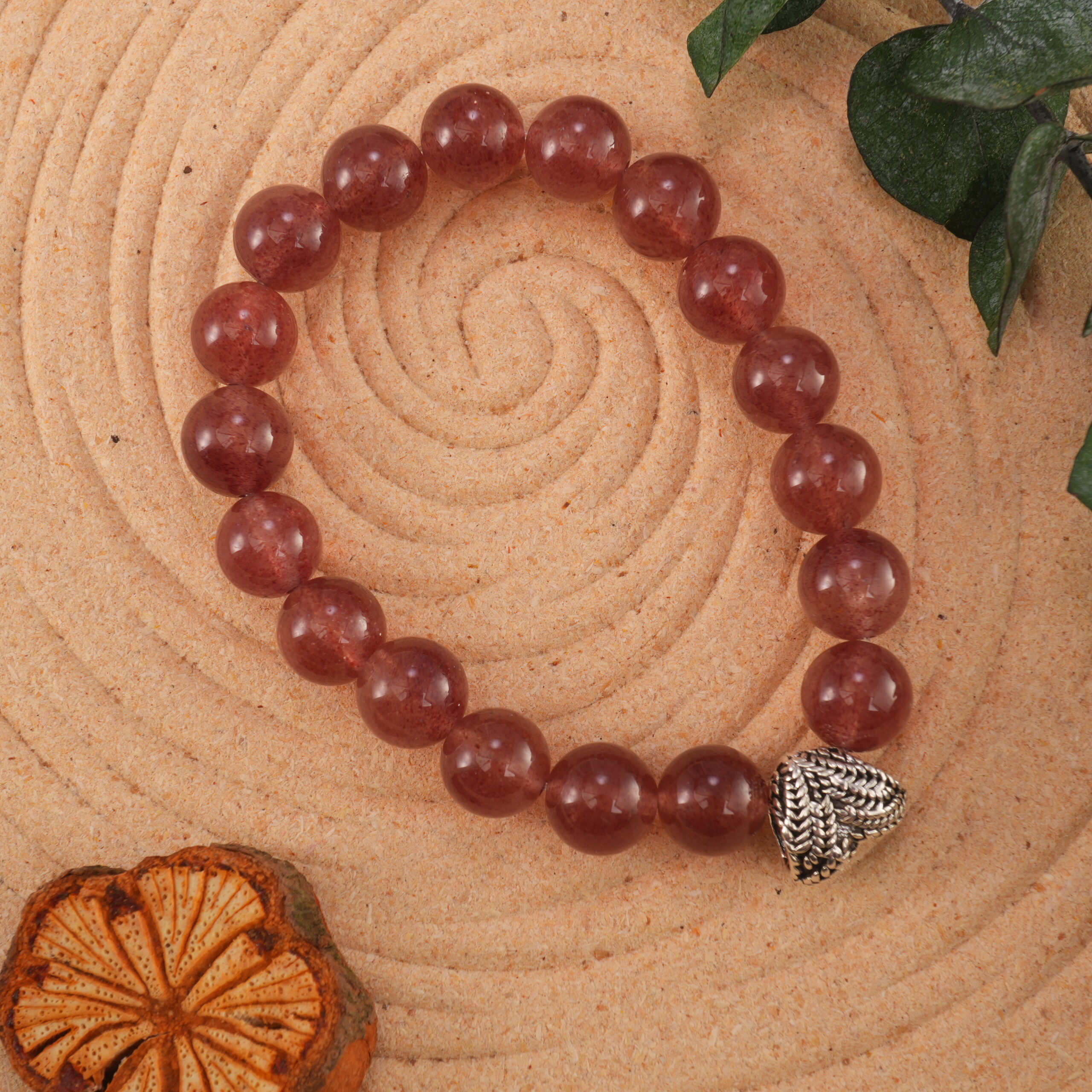 A delicate strawberry quartz bracelet featuring a silver heart charm. This gentle pink gemstone promotes love, emotional warmth, and sweet self-connection.