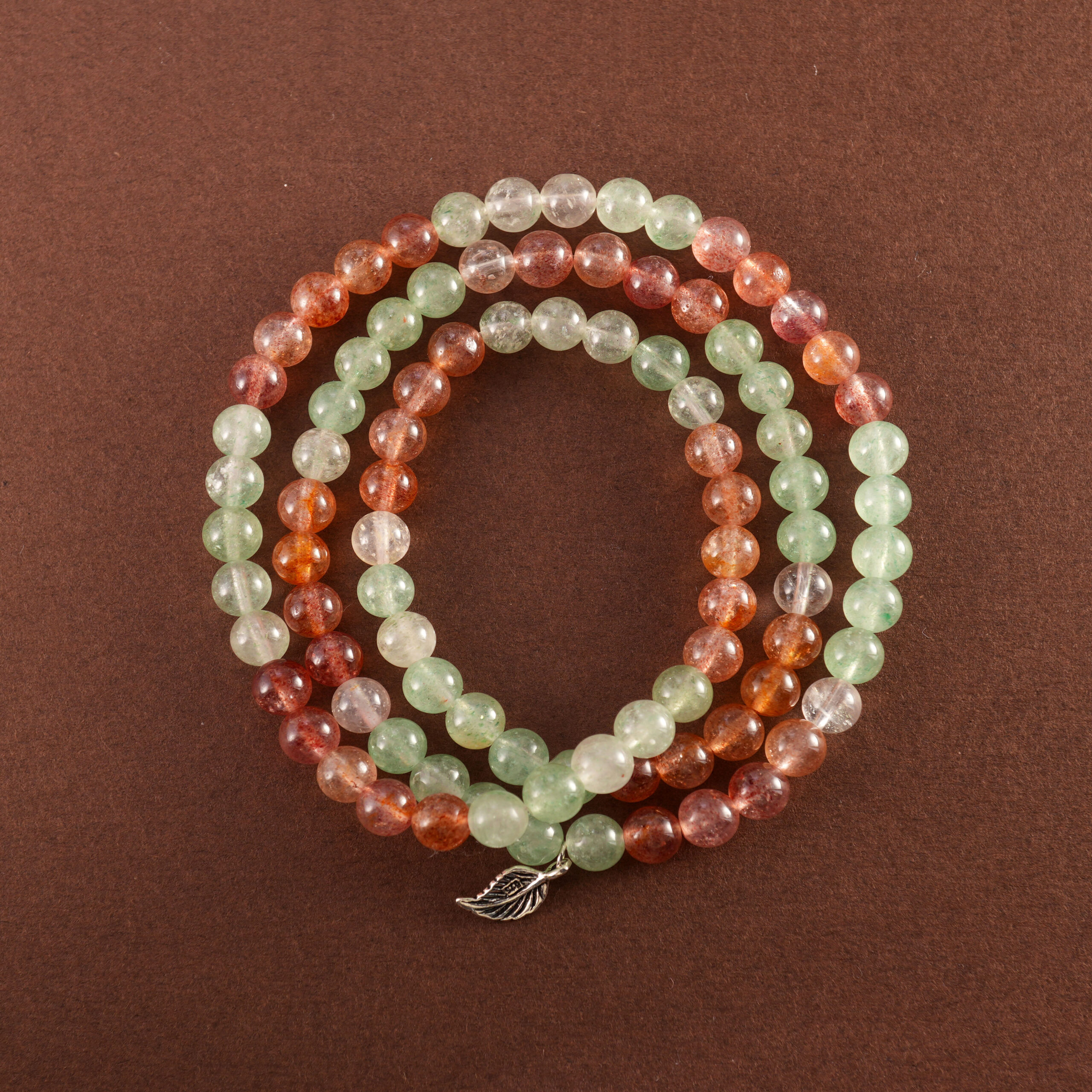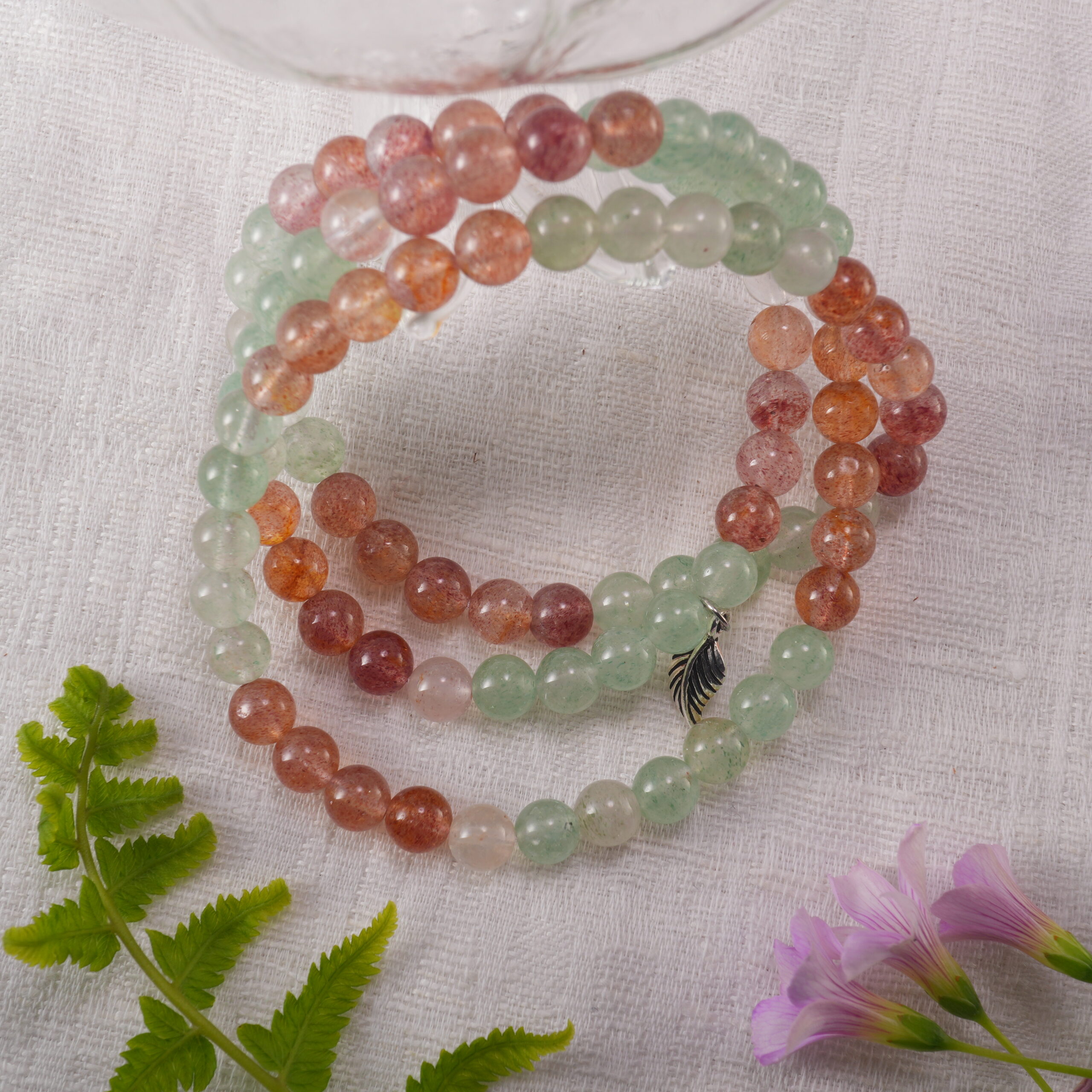 A triple wrap bracelet crafted with strawberry quartz beads and sterling silver details. It wraps you in loving energy, promoting emotional clarity and gentle self-love.