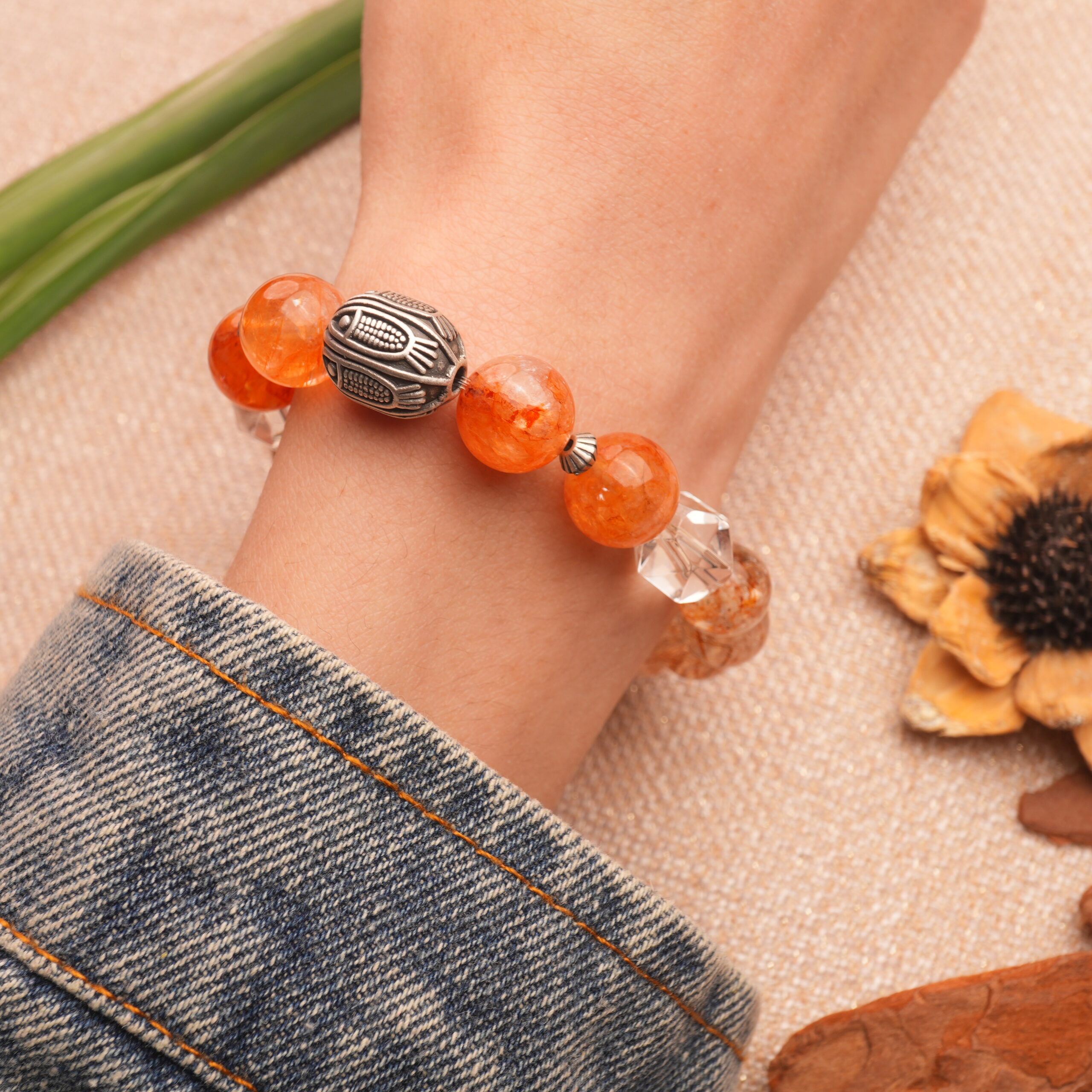 This handcrafted crystal bracelet combines Super Seven, clear quartz, and black gold obsidian to promote clarity, protection, and spiritual power. Set in sterling silver, it’s a refined accessory for manifesting abundance and grounded confidence.