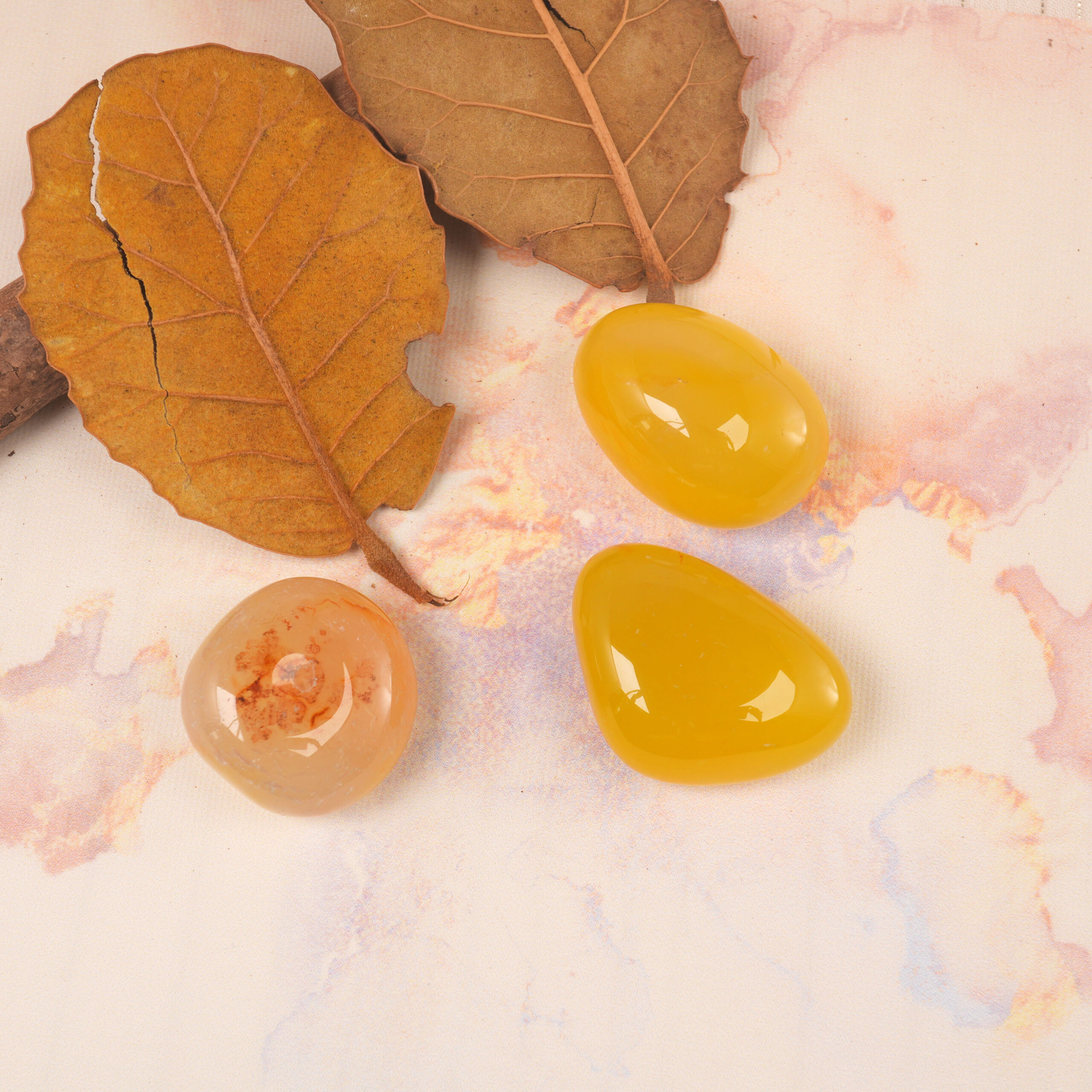 The Yellow Agate Tumbled Stone Set features polished stones that promote balance, creativity, and emotional healing — a beautiful addition to any space.